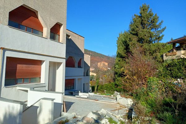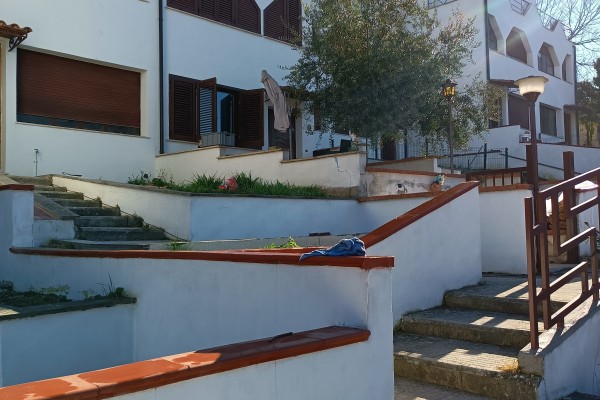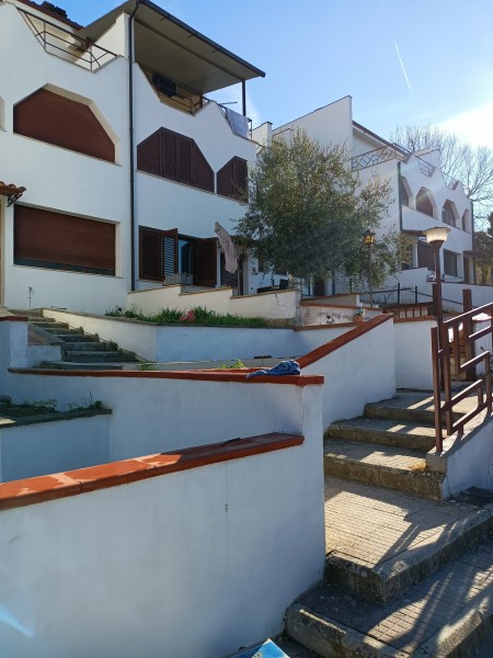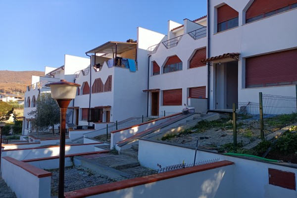 Si accede al complesso residenziale dal cancello principale, quale accesso unico per tutti nel cui piazzale è previsto un posto auto di proprietà, il villino proposto, é situato in posizione centrale la scala esterna in salita raccorda l'accesso verso ogni singola unità abitativa. Antistante l'ingresso padronale una piccola area verde di proprietà, anticipa l'entrata, al suo interno il villino si distribuisce, quindi, tra piano terra con ingresso - saletta con camino e grande finestra verso l'entrata principale, quattro gradini a salire e troviamo la cucina ed una stanza di fronte che può fungere da tinello o stanza studio con uscita verso il terrazzo sul retro, salendo al piano primo sul rialzato , una seconda camera ed un bagno , al piano secondo , camera bagno ed un terrazzo ampio, vivibile e piccolo ripostiglio, infine, al piano sottotetto una stanza mansardata con finestra.