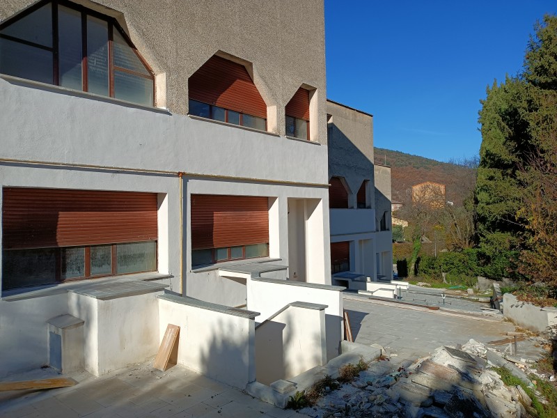 Il complesso residenziale di cui fa parte il villino proposto, è una costruzione risalente al 1983, in cemento armato rispondente alle norme per l'edilizia antisismica con regolare certificazione di abitabilità, da rifinire ed adeguare alle proprie esigenze, allo stato, sono presenti gli allacci alla rete idrica e fognante con impianti elettrico ed utenze solo da attivare. Il complesso residenziale ha un' architettura interna ed esterna uniforme negli spazi e nella dislocazione degli ambienti, ciascuno costituito da due piani fuori terra, locale di sgombero e un ripostiglio al piano in cui vi è il terrazzo ed una stanza mansardata.